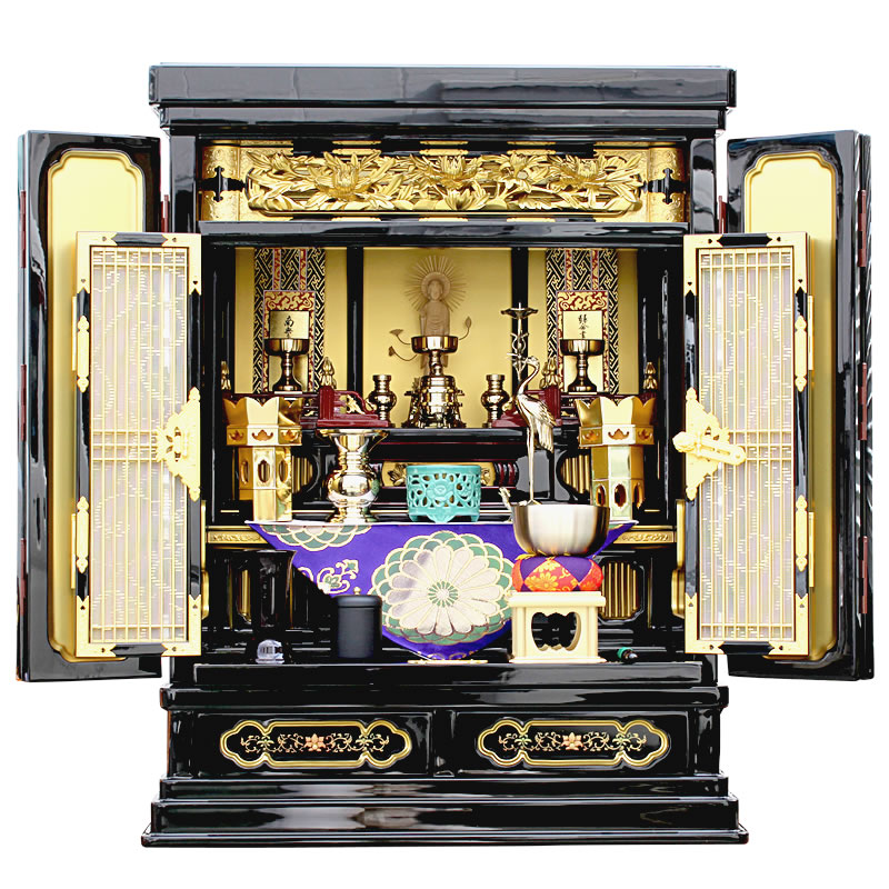 月明の良かったところを踏襲し、小型の上置きタイプの23号サイズのまま蒔絵を施し、華やかで豪華な欄間も健在で、抜群のコストパフォーマンスそのままに仕上がっています。